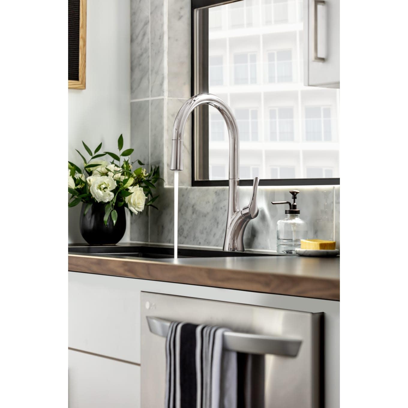 Miseno MNO171L Bella Pull-Down Kitchen Faucet with EasySeat Multi-Flow Spray Head - Includes Optional Deck Plate - PVD Stainless Steelโ