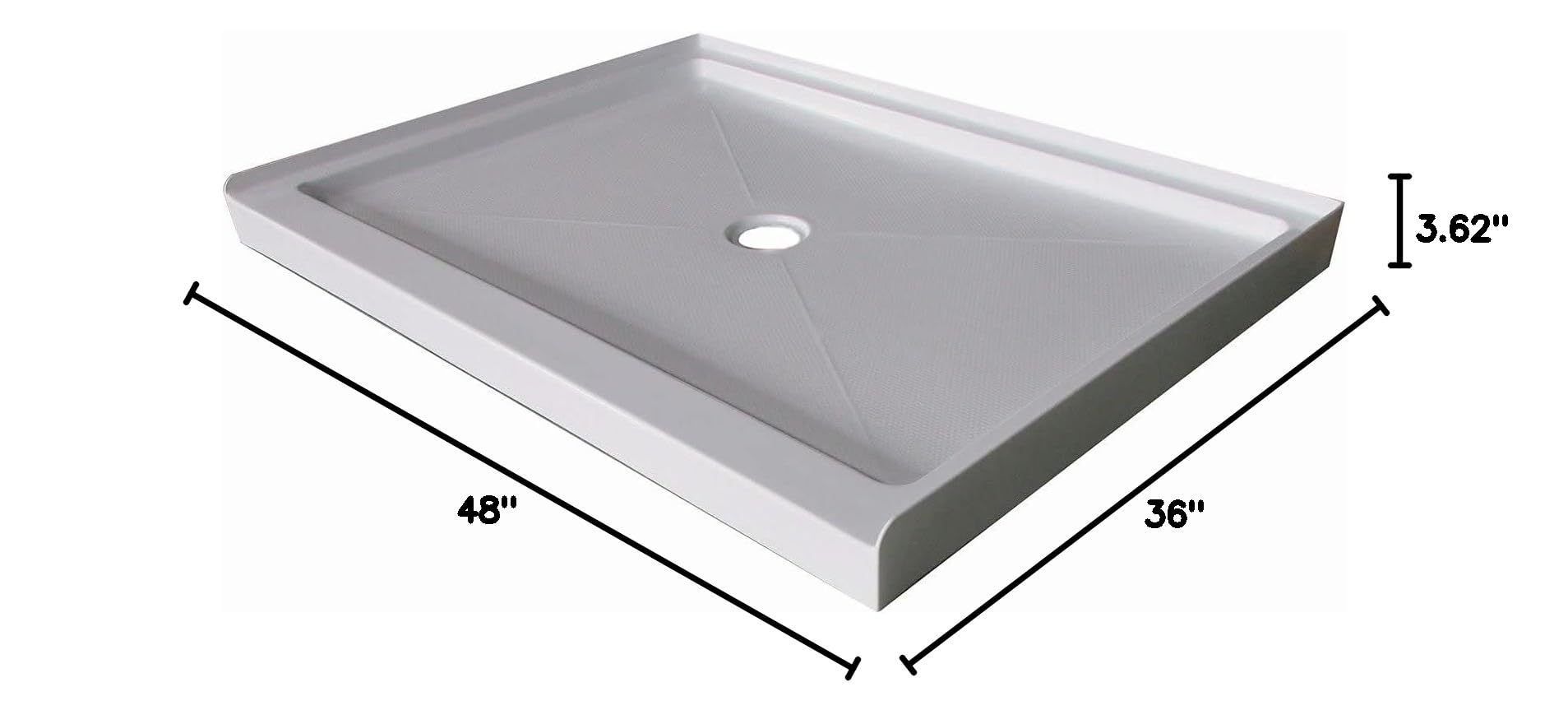 Miseno MNOSB4836C 48" x 36" Rectangular Shower Base with Single Threshold and Center Drain - White—