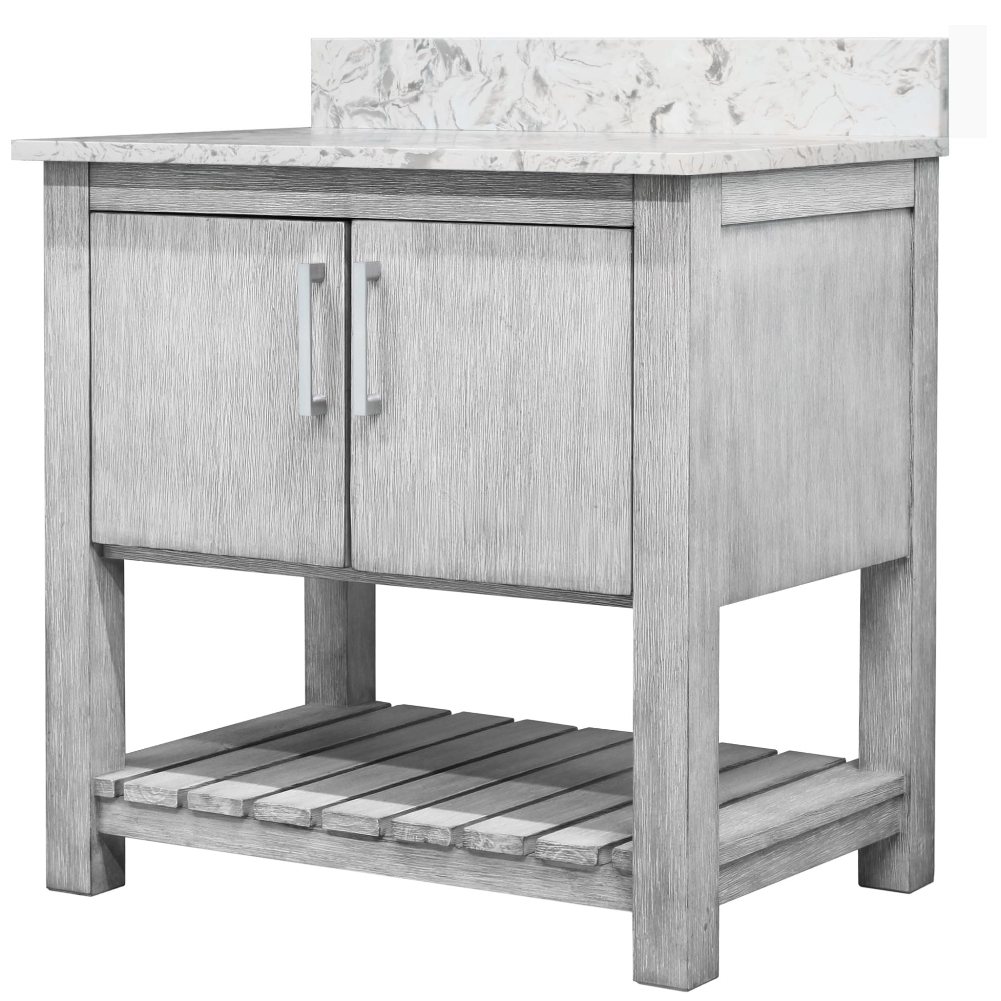 Miseno MV-36CM-NOBV-280-317C-MIR Ocean Breeze 36" Free Standing Single Basin Vanity Set with Cabinet and Quartz Vanity Top - Cafe Mocha/Storm Grey Top/Chrome Hardware